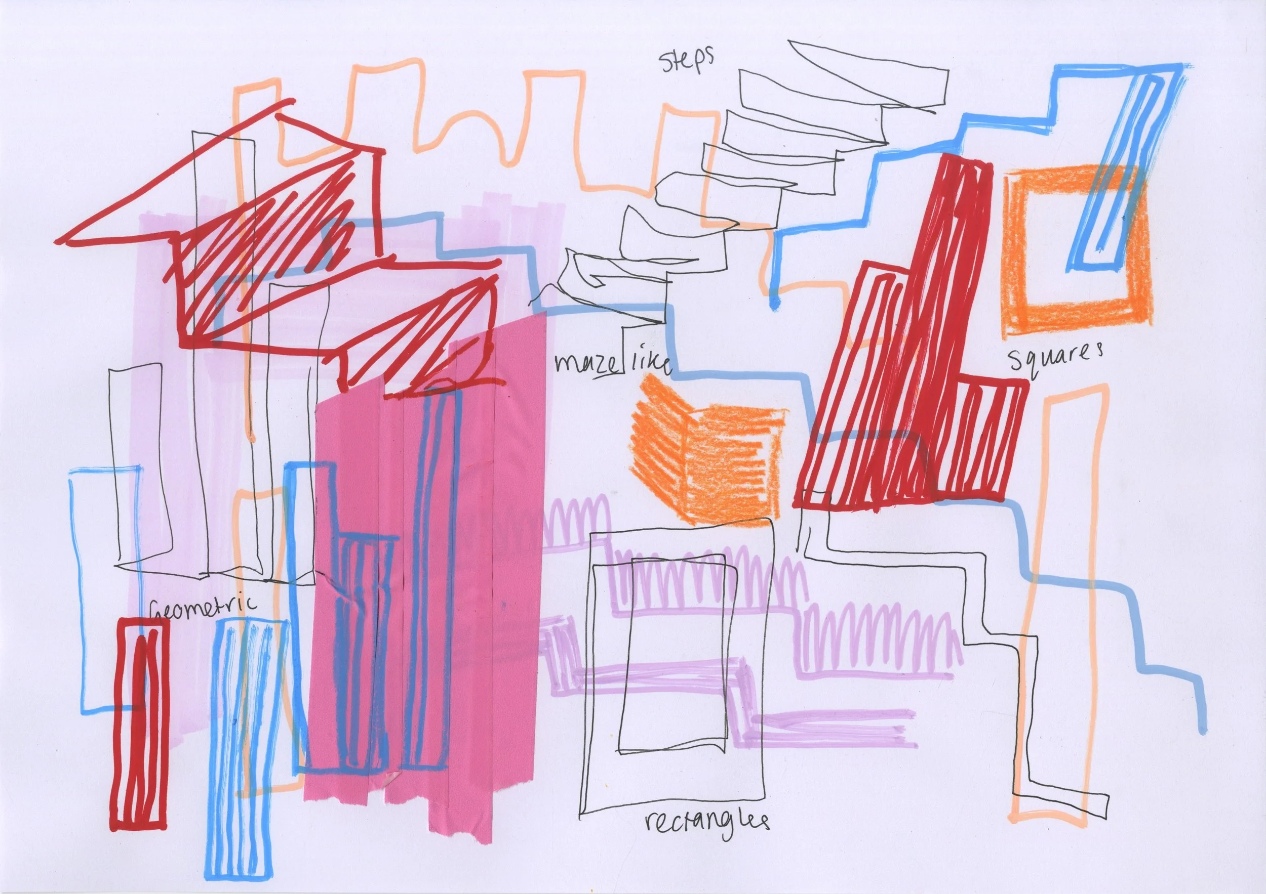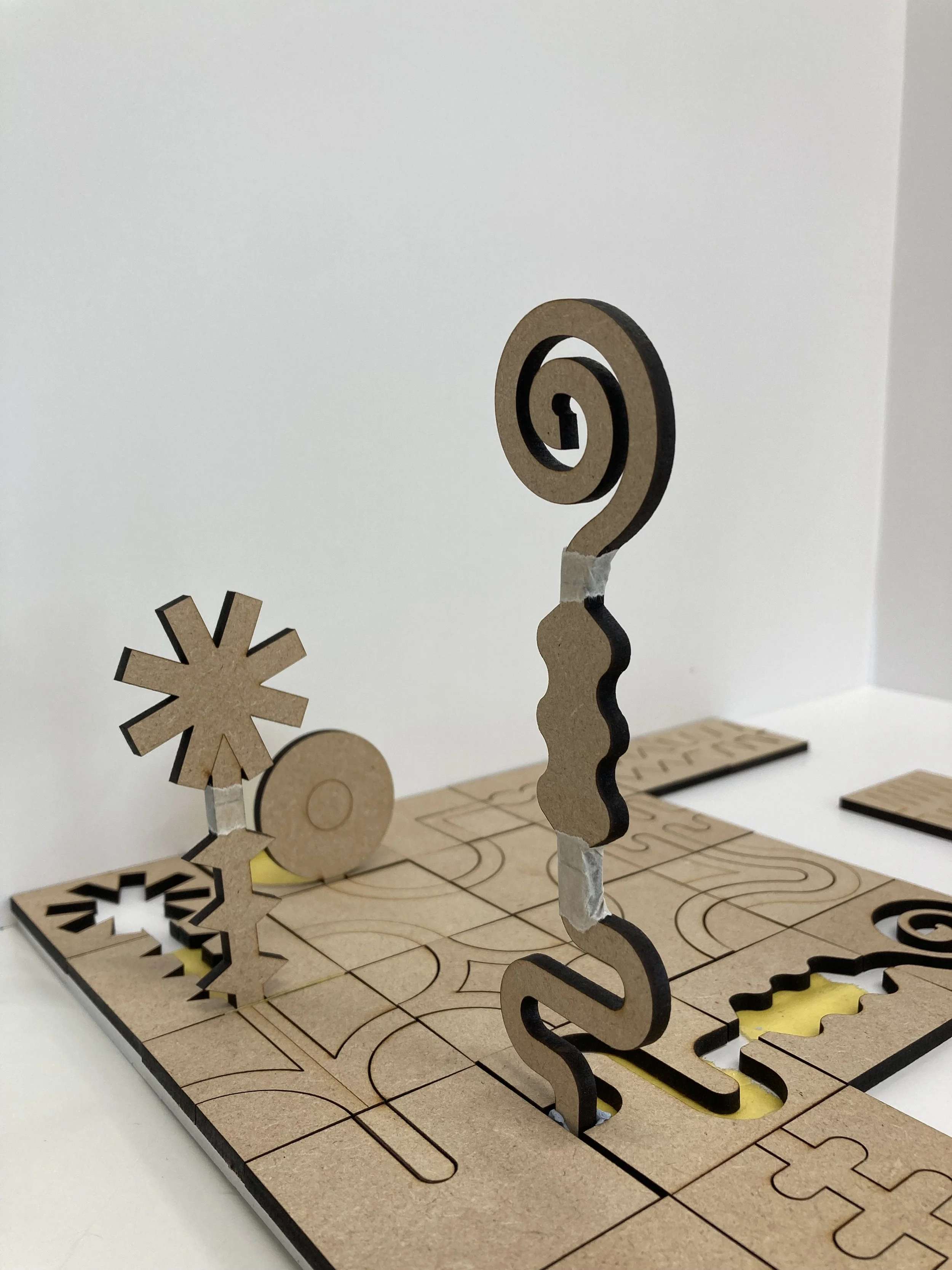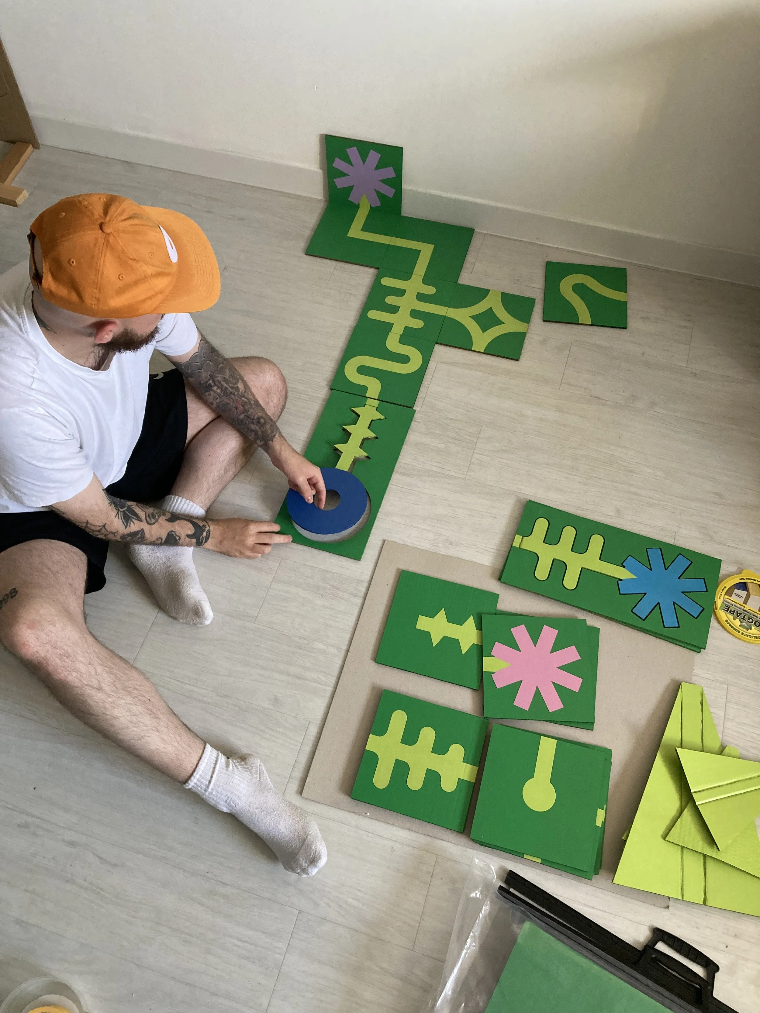 It is composed of a large 3D architectural collage based on the Muralla Roja by Spanish architect, Ricardo Bofill. In addition to this, I produced a collection of tiles and pop up tiles that can be placed in whatever arrangement the user decides. The pattern depicts the abundance of nature, diversity, journeys and the interconnections of vegetation and life.